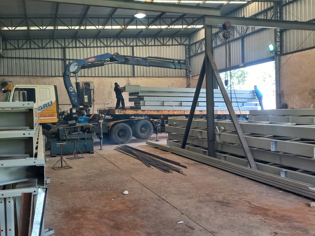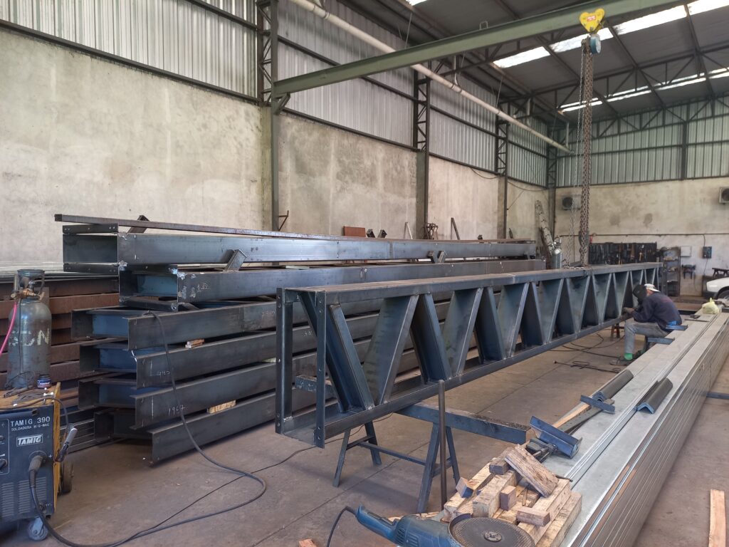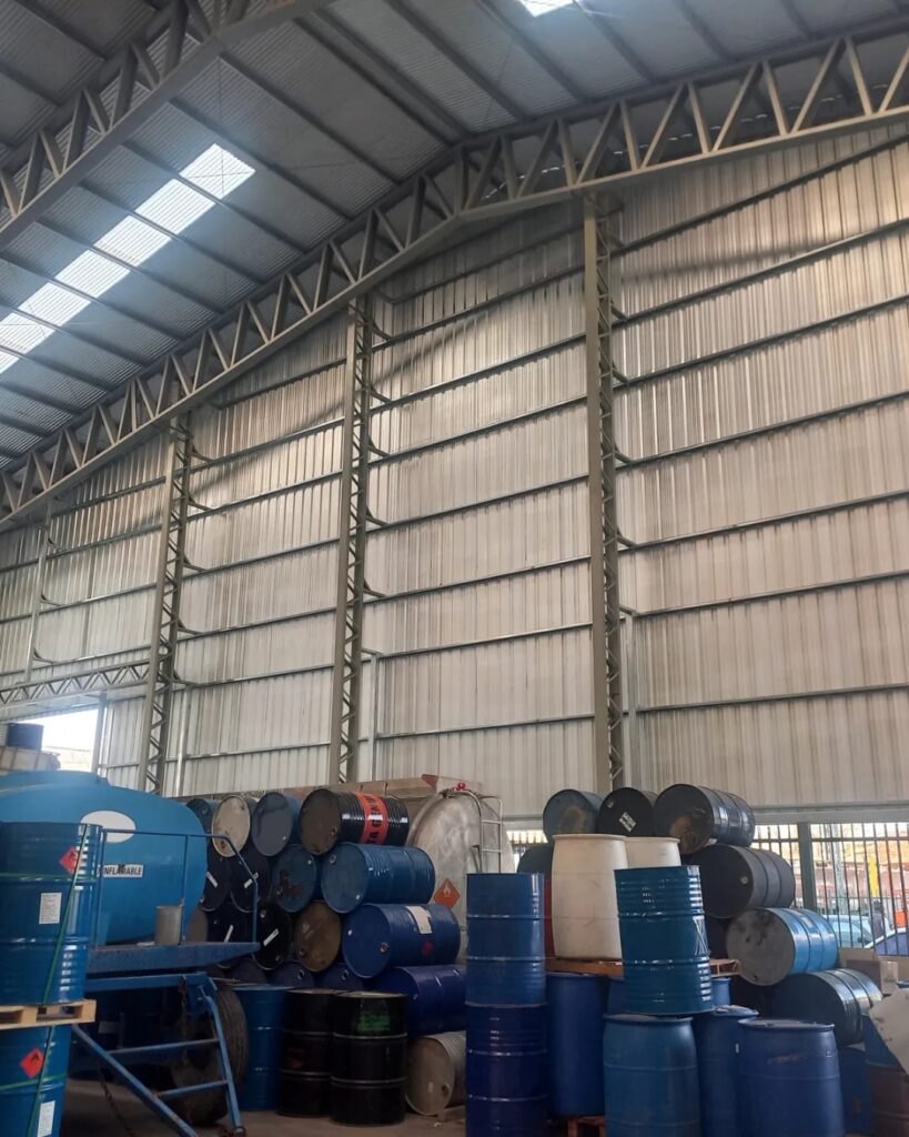 Nave a 2 aguas de 36,00 mts de frente por 50,00 mts de largo y 9,00 mts de altura de columnas. Nave sin columnas intermedias y Cabriadas sin tensor, para un máximo aprovechamiento del espacio